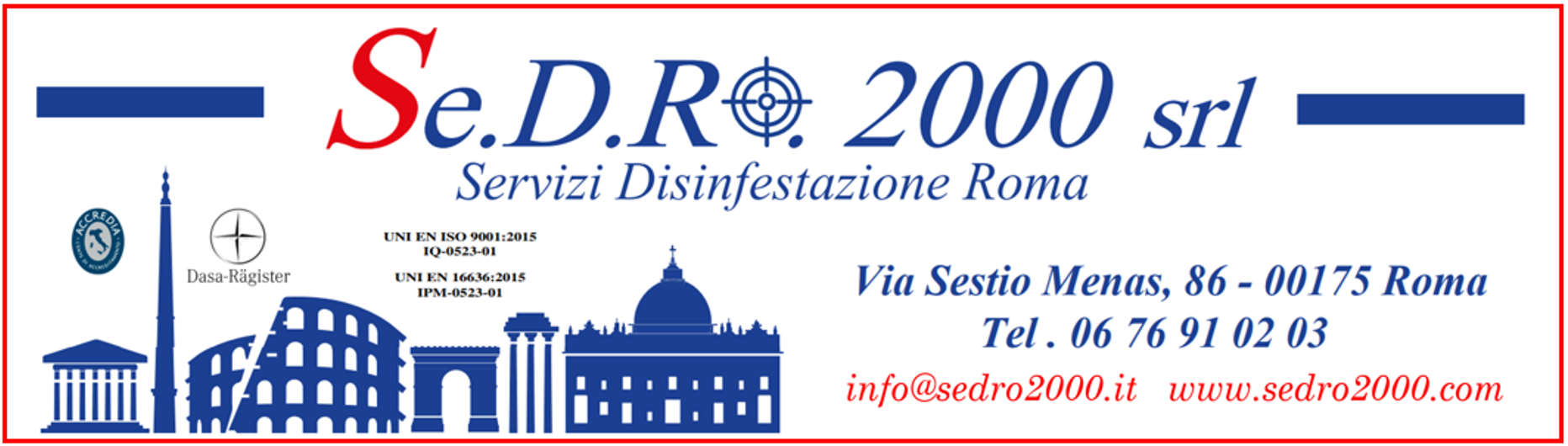 SE.D.RO. 2000 offre un servizio completo e professionale di disinfestazione contro agenti infestanti di ogni tipo a Roma.